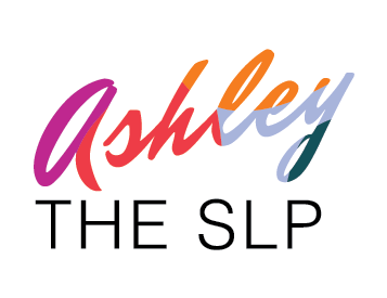 Ashley, a speech-language pathologist, requested a colorful and playful logo. The logo includes the script font "Ashley" at an angle that adds motion and interest, as well as the contrasting san serif text "The SLP". Ashley's initial "AML" are on a colorful quadrilateral that can be used independently of the other text. This logo reflects Ashley's brand and aesthetic as a speech-language pathologist.