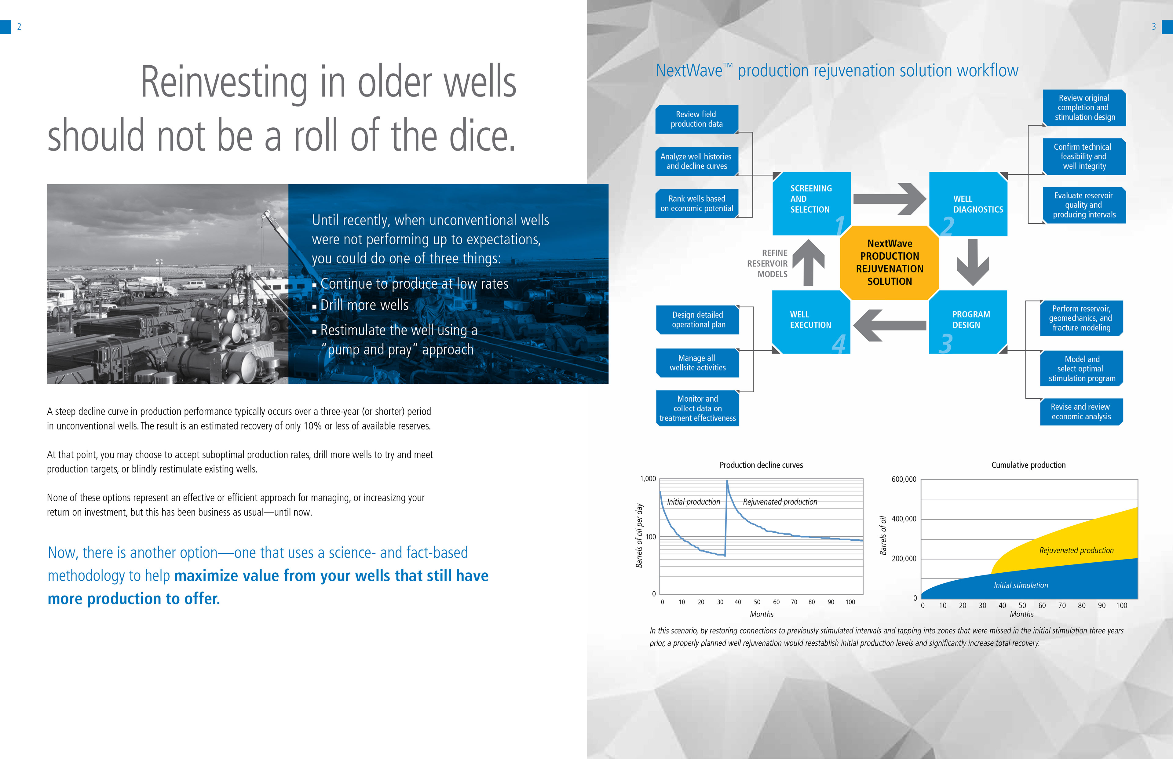 A long brochure I created for Baker Hughes NextWave Production Rejuvenation Solution.