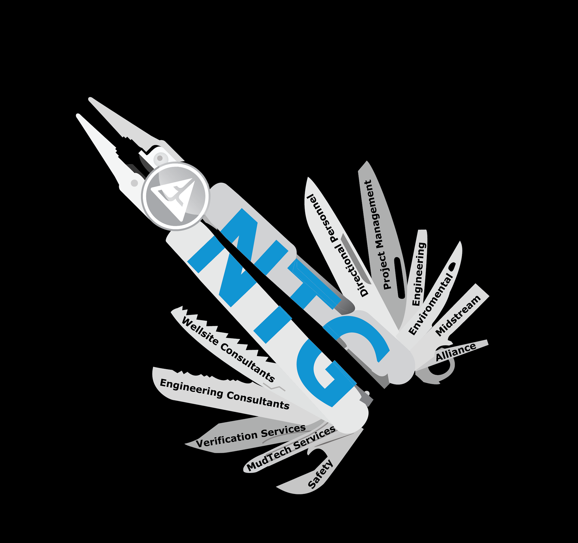 NTG wanted to show all of the companies that are part of NTG and the services they offer. I was asked to illustrate a multitool in which each tool was a different aspect of the company.